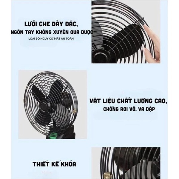 – Chất liệu : thân quạt và cánh bằng sắt sơn tĩnh điện, đế pin bằng nhựa ABS